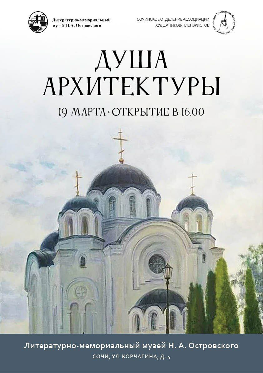 - С 19 марта по 5 апреля - Вставка Ассоциации художников - пленэристов "Душа архитектуры" в "Литературно-мемориальном музее Н.А. Островского " 19 марта в 16.00 !